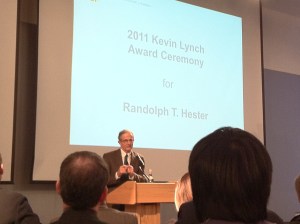 In accepting the 2011 Kevin Lynch Award at MIT, Randy Hester gave a provocative speech about the enduring importance of urban design. Here is my tweetroll from the event.