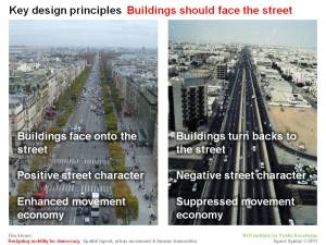 1. buildings need to face the street – this is mostly understood although there is still a fear of the street as a loud and smelly thing.