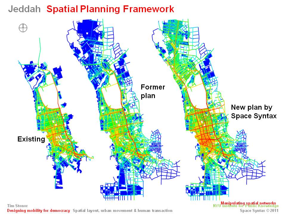 First, at the scale of the entire urban system – whether village, town, city or urban region. Design is fractal. Movement is fractal and the principles are scalable. This is relevant both to the retrofitting of existing cities (Jeddah, Berlin) and the creation of new urban areas.