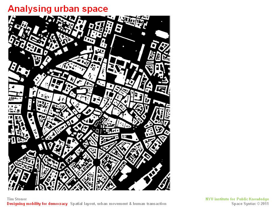 Given the title of this event: “Designing mobility”, I want to turn to the subject of design and the role of architects. The key message of this presentation is that cities need architects, not only to design the buildings that fit into them but also for the networks of space that connect them together. Why? Because architects have a special skill: to resolve complex problems into elegant solutions. And the spatial network of the city is a complex design problem.