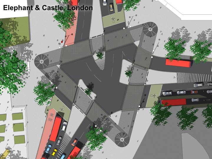 At the Elephant & Castle, this design puts the pedestrian crossings on the pedestrian desire lines – just like those crossings in Pompei. We’ve talen pedestrians out of subways and given them their proper place at street level, next to the shopfronts. We’ve made the humble crossing an object of beauty, spending many different budgets (landscape, planting, pedestrian, cycling, highways) on one project so that each budget gets more than if it had been spent separately.