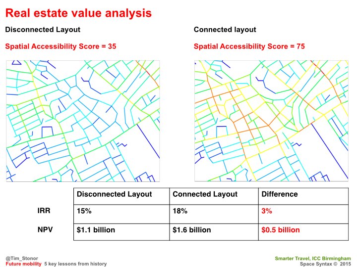 The more we look into this the more we find of value: for example, how connected street grids create higher property values in the long run.