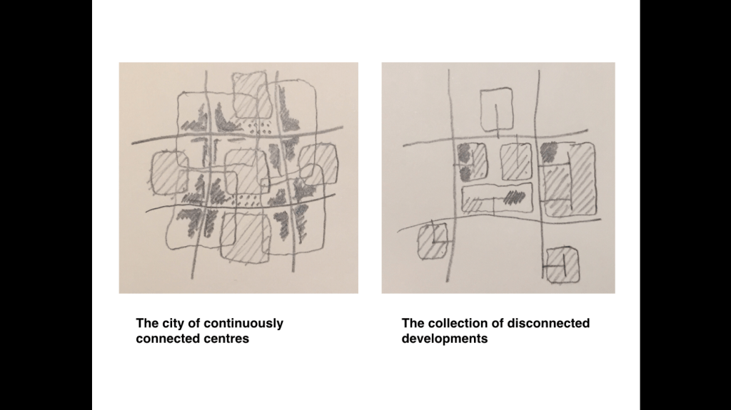 Future urban plans should therefore be created with a special emphasis on the design of the spatial layout of the city. Opportunities should be identified to strengthen the network of streets and open spaces, pursuing an overall objective to create a city of continuously connected centres. Constraints should equally be identified so that reasonable plans can be made.
