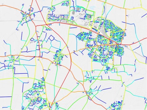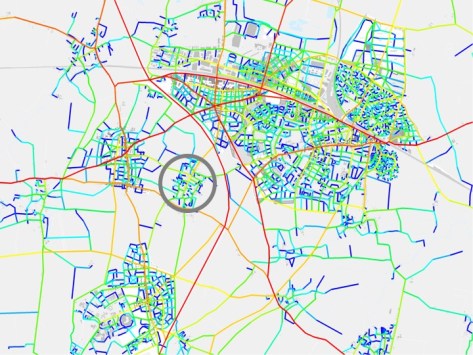 Second, and most importantly, is the theory of natural movement, which as Bill just explained, demonstrates that the more connected streets are better used. Connectivity is measured using a computer algorithm that measures how likely it is that people will want to flow down individual streets as they move from A to B. The algorithm calculates all possible journeys using not only the distance as an input but also the complexity of the journey. This is the USP of Space Syntax – most traffic models don’t include complexity in them and, as a result, don’t work particularly well to describe real human behaviour.