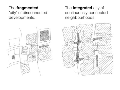 Plenty of action on the foreground grid of main streets and in the centres: social and economic interaction, transaction and innovation.