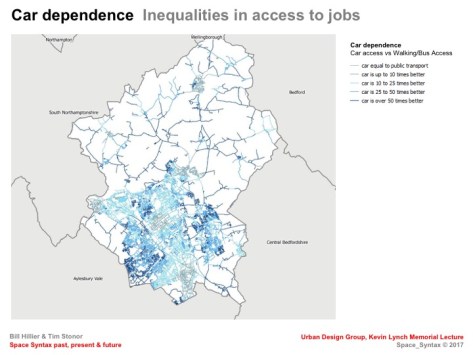 For example, as in this slide, about urban morphology, car dependence and how this affects people’s ability to seek work.