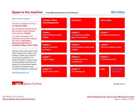 Good evening. It’s a great honour to have been asked to give this evening’s Kevin Lynch Memorial Lecture, and a special honour to be doing so on behalf of Bill Hillier, who is unable to join us. Bill sends his best wishes to the Urban Design Group.